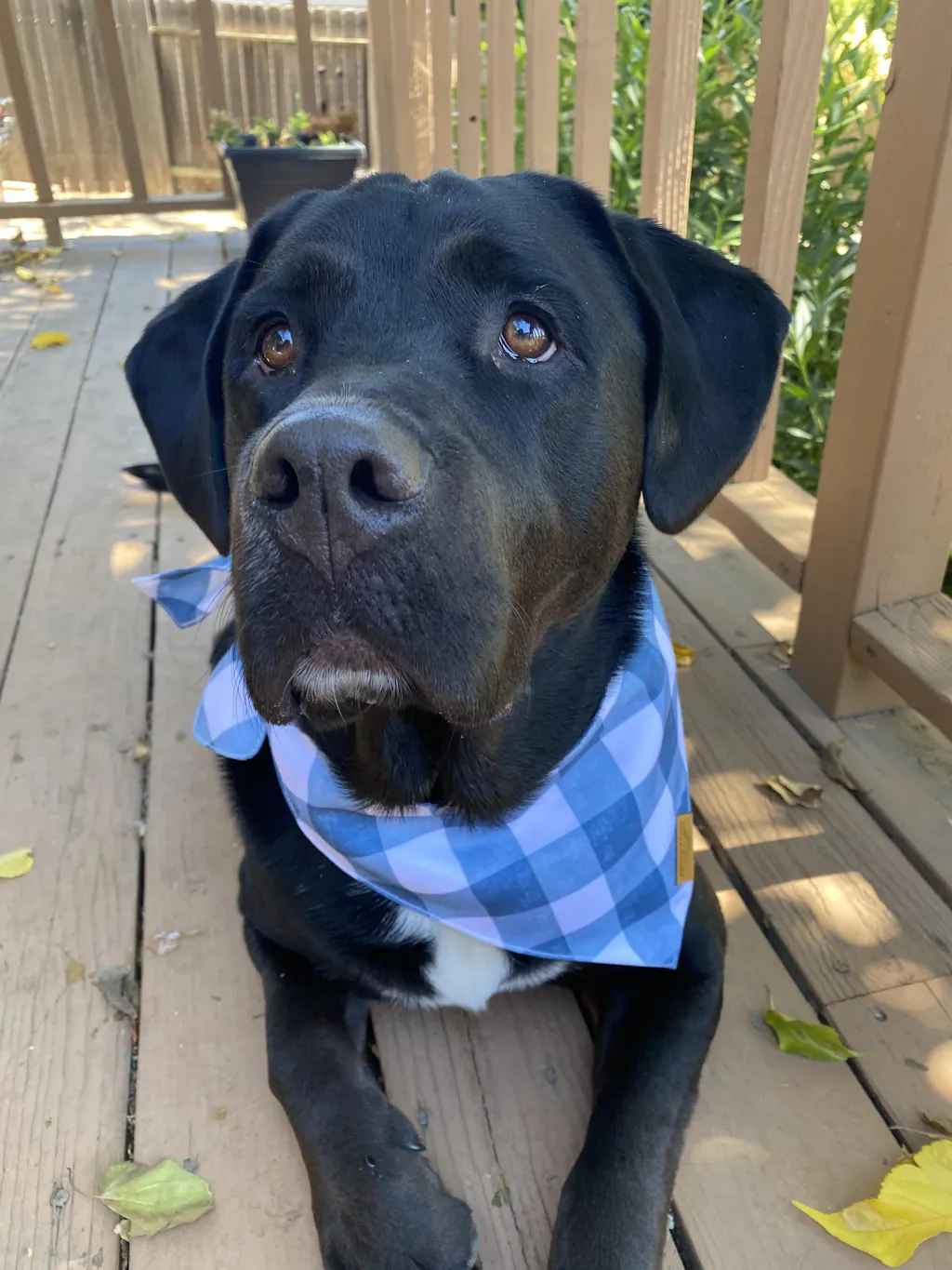 A patented shape engineered to fit your dog's neckline, not a repurposed triangle tied around it.